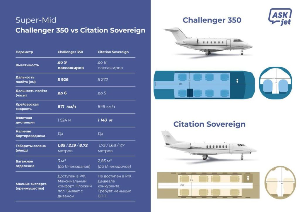 Два топа Super Midsize: Citation Sovereign vs Challenger 350