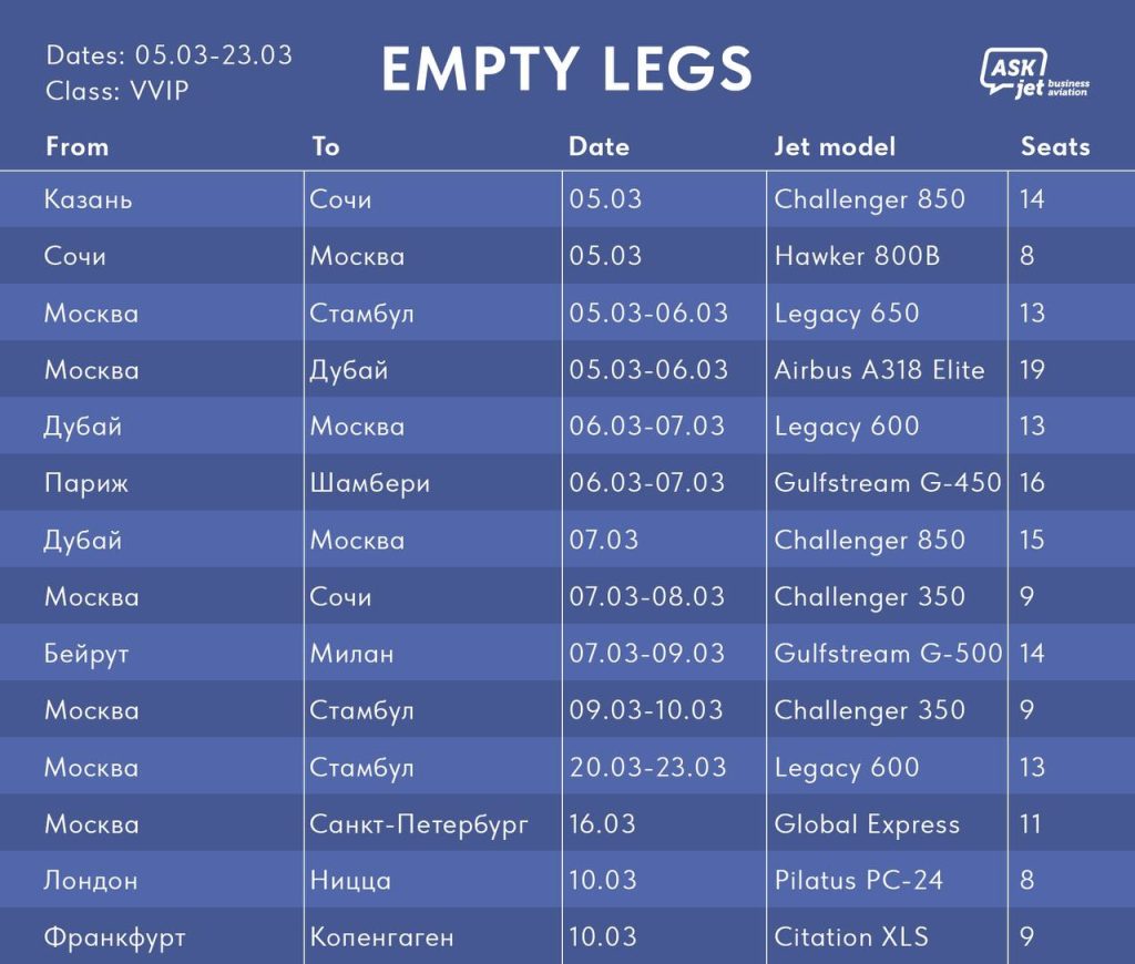 Для получения полного списка Empty Legs напишите или позвоните нам ✍️
