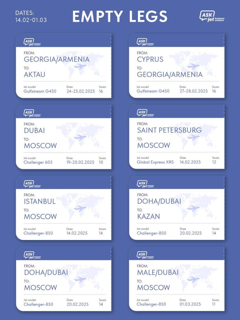 Представляем вашему вниманию список Empty Legs по популярным направлениям на ближайшие две недели ✈️